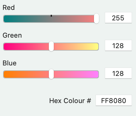 I chose the following Hex codes for the colors.