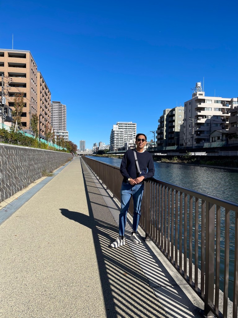 We headed to Tokyo Skytree on foot, passing by Oyoko River. The straight path along the river was almost vacant. We came across a man on a paddleboard. Further along, we encountered an elderly man fishing by the riverbank. It was a truly good start to the day, reminding us of the simple pleasures of walking, which is not only a great way to explore but also one of the most effective habits for promoting longevity. This morning walk was one of the precious moments of the trip.